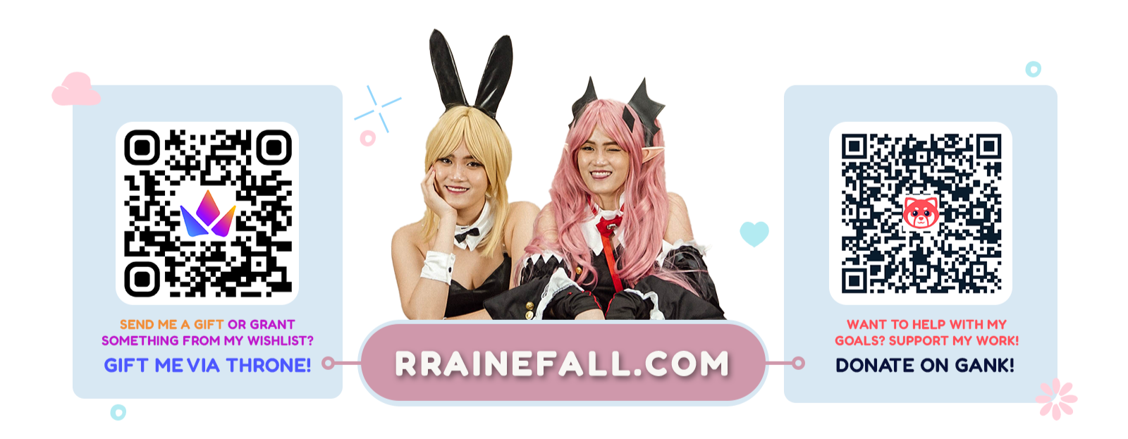 My name is Rraine, and I’m a part-time streamer and cosplayer, navigating the roller-coaster of balancing my passion for streaming with the demands of my personal life. Welcome to my journey as I build a space where energy, authenticity, and community thrive.I started streaming in late 2018 on Facebook Gaming, into the thrilling world of Dead by Daylight. This multiplayer (4v1) horror game was my first step into streaming, where I’d usually play as a Survivor. Over time, I built a small, supportive following. Unfortunately, personal priorities forced me to take a break.In 2019, I returned, determined to balance full-time work, personal life, and streaming. I stuck with Dead by Daylight as my main game but occasionally switched to Star Wars Battlefront 2 when the mood struck. Then in 2020, Animal Crossing: New Horizons took center stage on my streams until October of that year. While streaming ACNH, I grew my Facebook Gaming audience significantly, but despite the growth, I struggled with inconsistency and motivation.In November 2020, I re-entered the streaming scene as a Genshin Impact creator, unlocking exciting opportunities and reaching new milestones. However, life had other plans. And by February 2021, I faced yet another challenge: *starting over on Twitch. Building from scratch wasn’t easy, but I stayed optimistic and consistent. After much effort, I reached Twitch Affiliate status in April 2021, marking a new chapter in my journey.Fast forward to 2022, I embraced the fast-paced chaos of Apex Legends, dedicating particular days to it, while reserving weekends for Back4Blood. By 2023, I ventured into Valorant, slowly but surely improving until I became a gold-stuck player. 😁Now, I’m exploring new ideas in content creation while juggling an increasingly busy life. It’s been a slow grind filled with ups and downs, but I’m still here, giving it my all and sharing the journey with an amazing community. So if you’re ready for high-energy interactions, skincare tips, real-life chats, and the occasional rage-filled fps games, stick around — the best is yet to come!